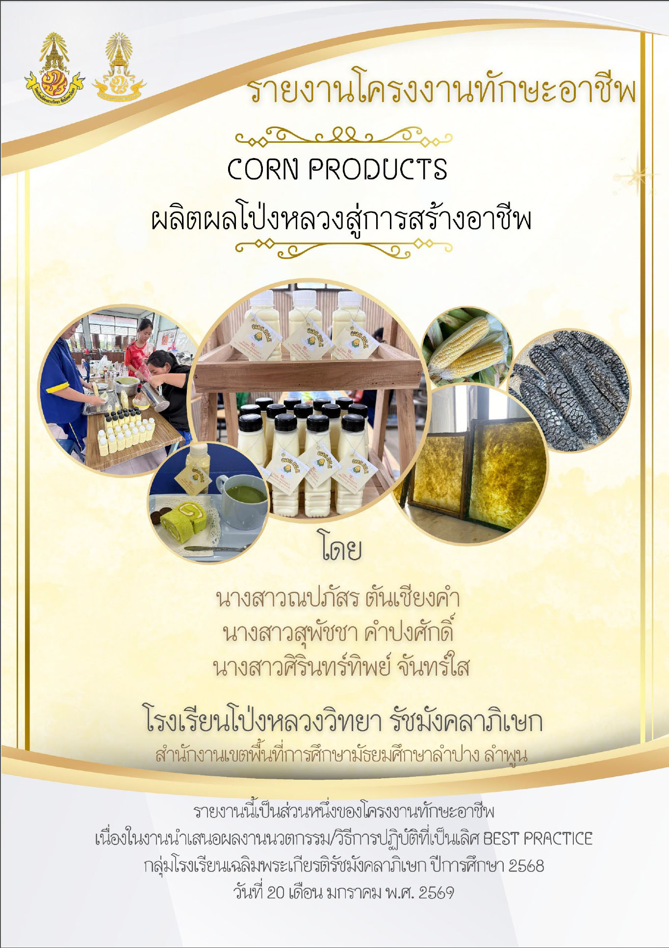 Best Practice นักเรียน รายงานโครงการทักษะอาชีพ Corn products ผลิตผลโป่งหลวงสู่การสร้างอาชีพ